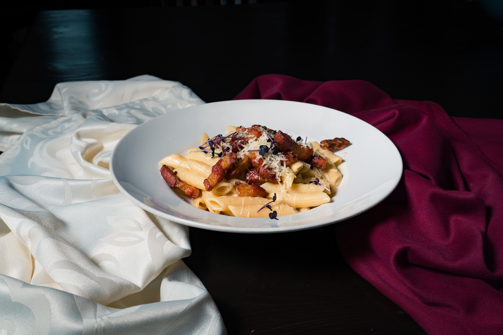 Ingrediente: Mozzarella, smântână vegetală, ou, pancetta, brânză parmezan
