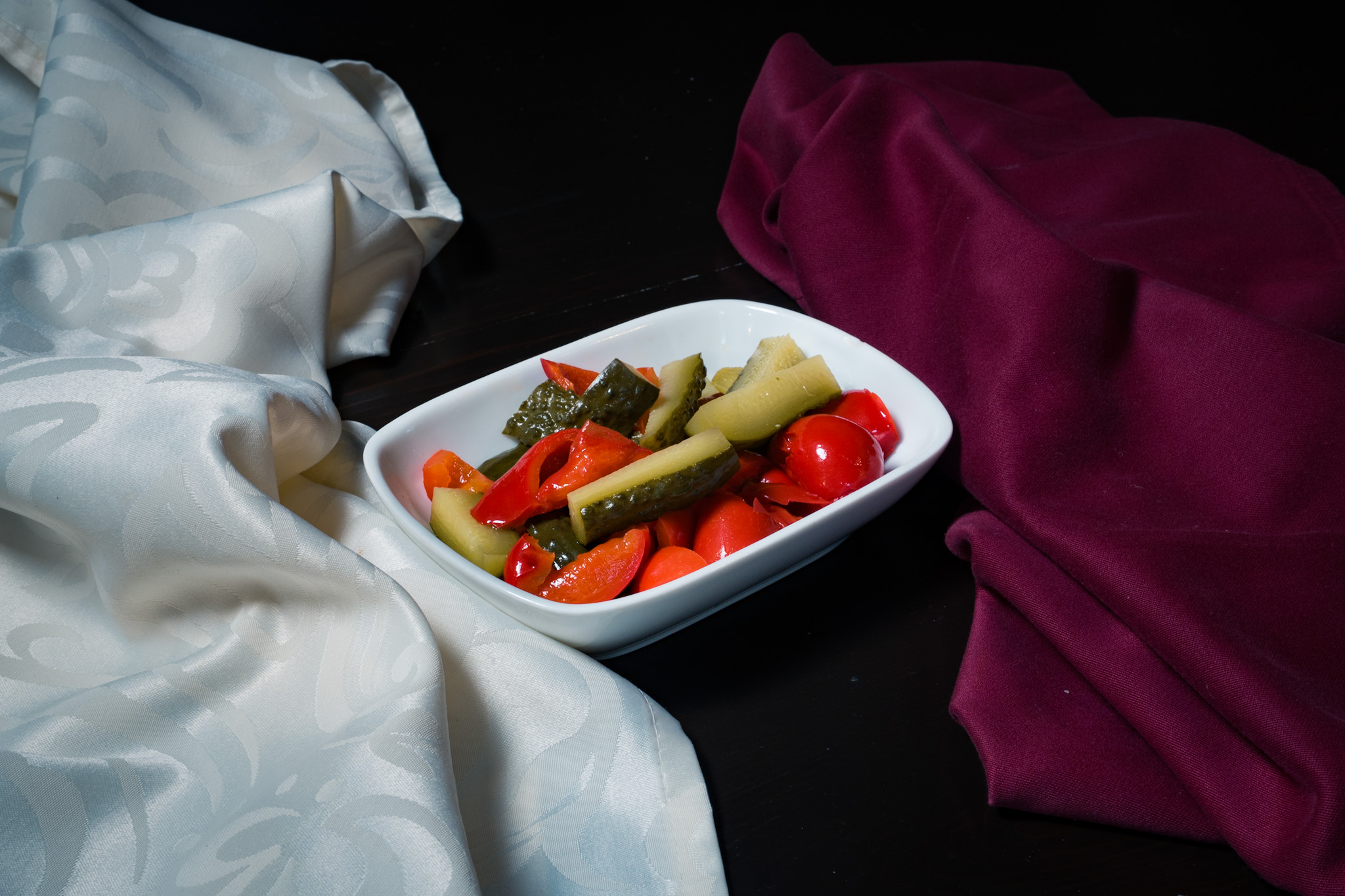 Ingrediente: Castraveți murați, gogoșari murați, ulei măsline, sare